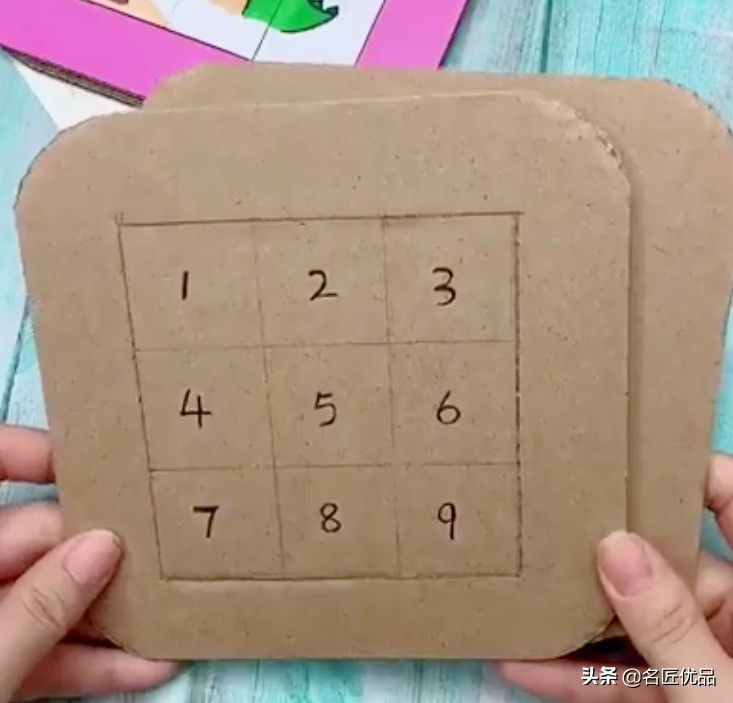 1.先用纸板裁剪两个方形,并在其中一个画上九宫格。