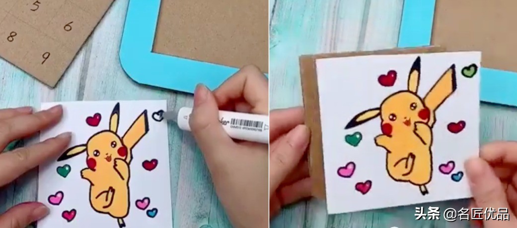 4.在白纸画上图案,把图案贴在九宫格的纸板上。