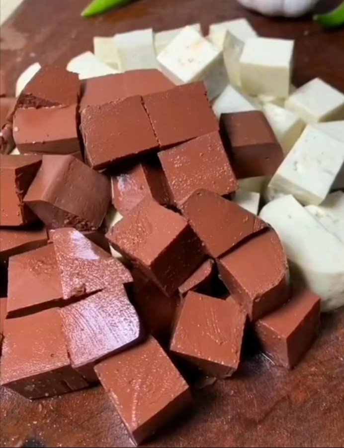 猪血炖豆腐——特点:软嫩鲜香、入口即化、简单易做、一看就会。