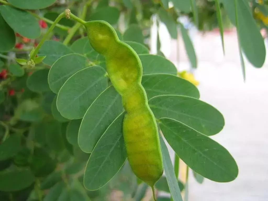 果 荚果扁平,带状,开裂,长7-10厘米,宽8-12毫米,顶端具细长的喙,果颈长约5毫米,果柄明显;种子10-12颗,有光泽。全年均能开花、花期特长,可以看到花苞、盛开的花朵、扁平的荚果都同时出现在枝头上的特色,是观察植物开花过程的好对象。