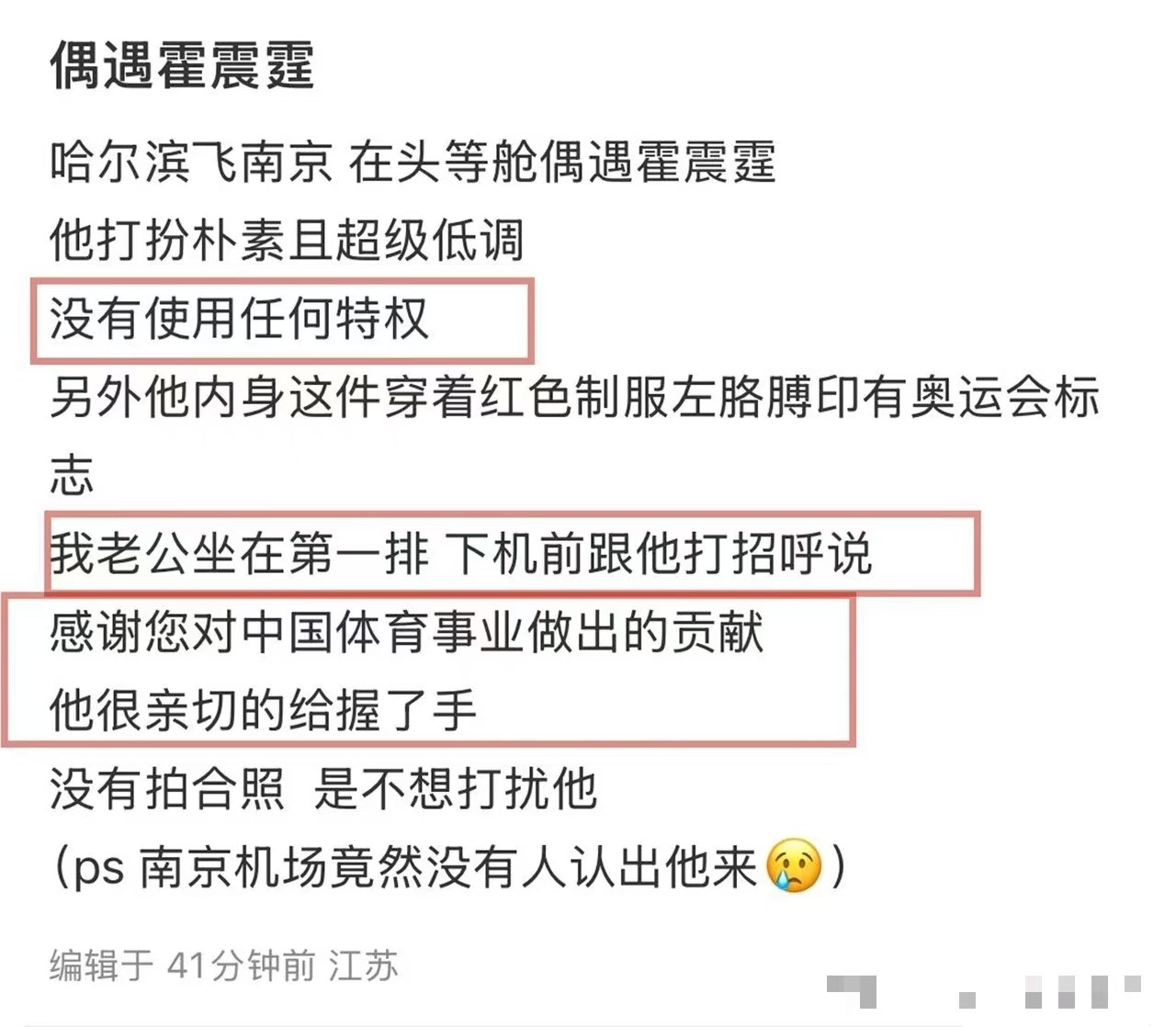 乘客的老公在下飞机前还特意和他打了招呼,感谢他对中国体育事业的贡献。霍震霆则亲切地与他们握手,这份亲和力让人倍感温暖。