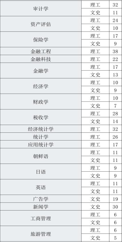 其中大数据管理与应用、电子商务、计算机科学与技术、数据科学与大数据技术、信息管理与信息系统、金融工程、金融科技、经济统计学、统计学、应用统计学、物流管理和数学与应用数学仅招收理科生;广告学和新闻学仅招生文科生。其余专业均文理简章。