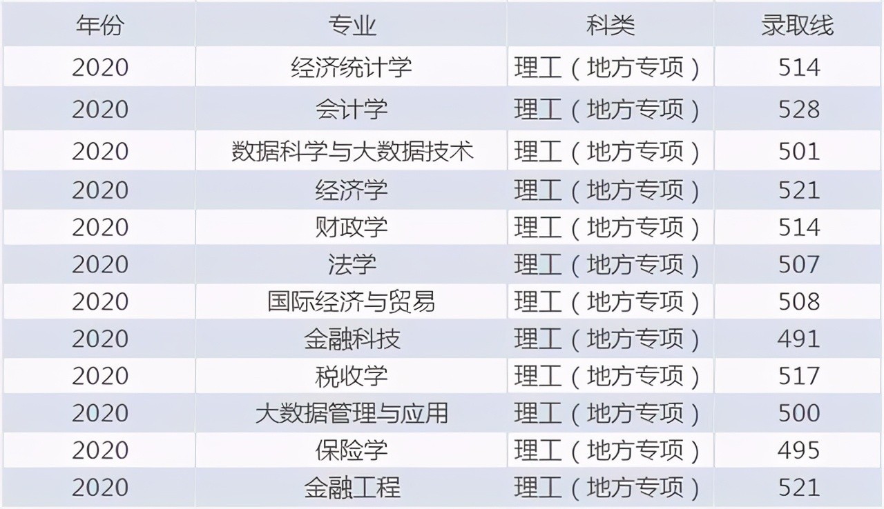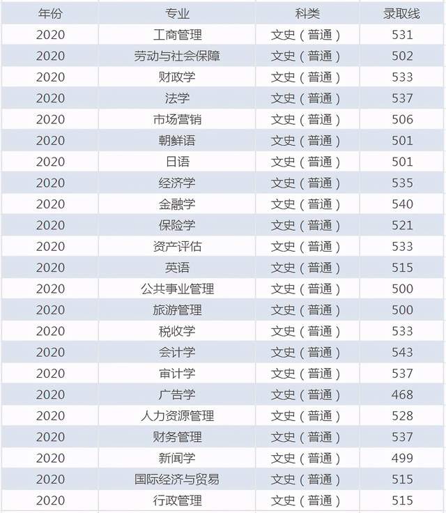 吉林财经大学2020年在吉录取线