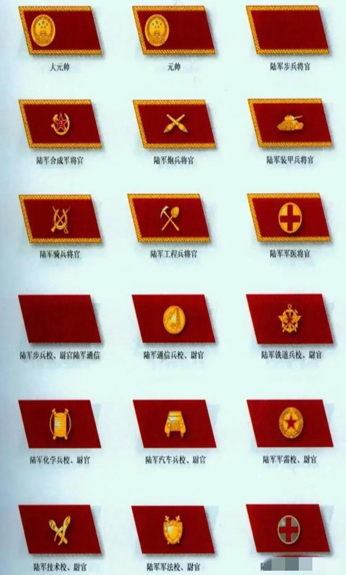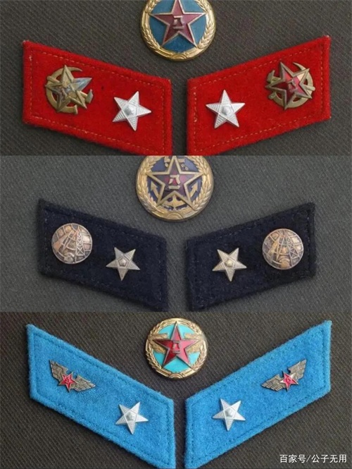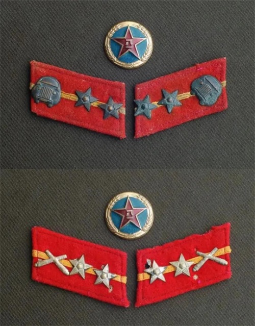 由上到下分别为:汽车兵上士军衔、炮兵上士军衔、公安军上士军衔。
