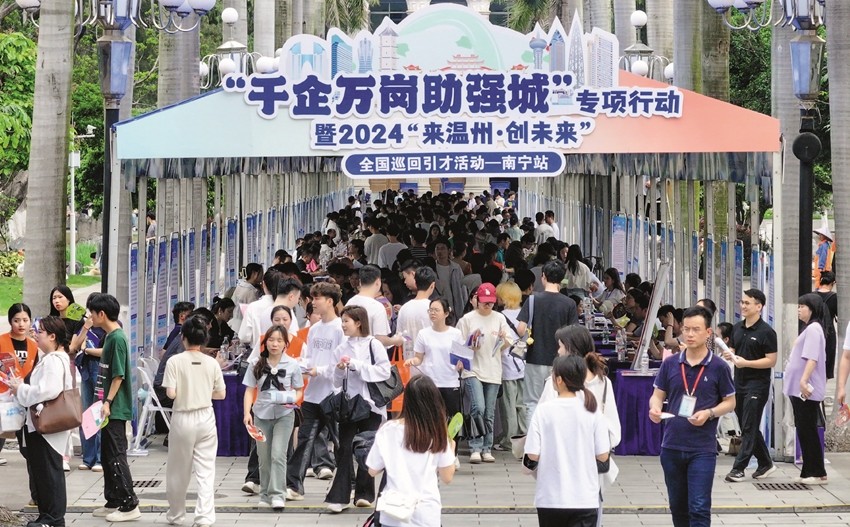 2024年4月18日至19日,浙江温州巡回引才专列开抵南宁,举办“千企万岗助强城”专项行动暨2024“来温州·创未来”全国巡回引才活动专场招聘会。