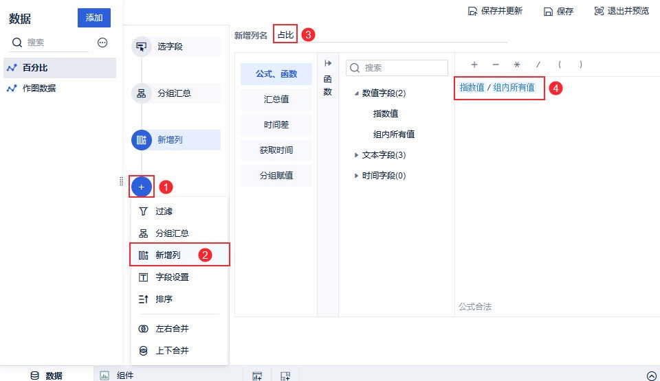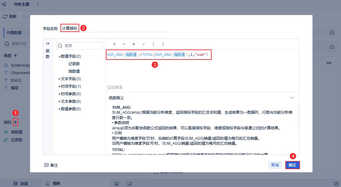 注:此处的「指数值」字段需要在字段栏选择填入公式,手动输入无效。