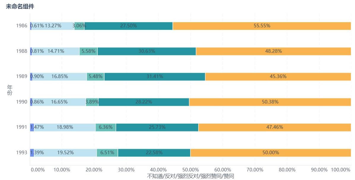 百分比堆积柱形图 做好后,点击「交换横纵轴的字段」按钮。效果如下图所示: