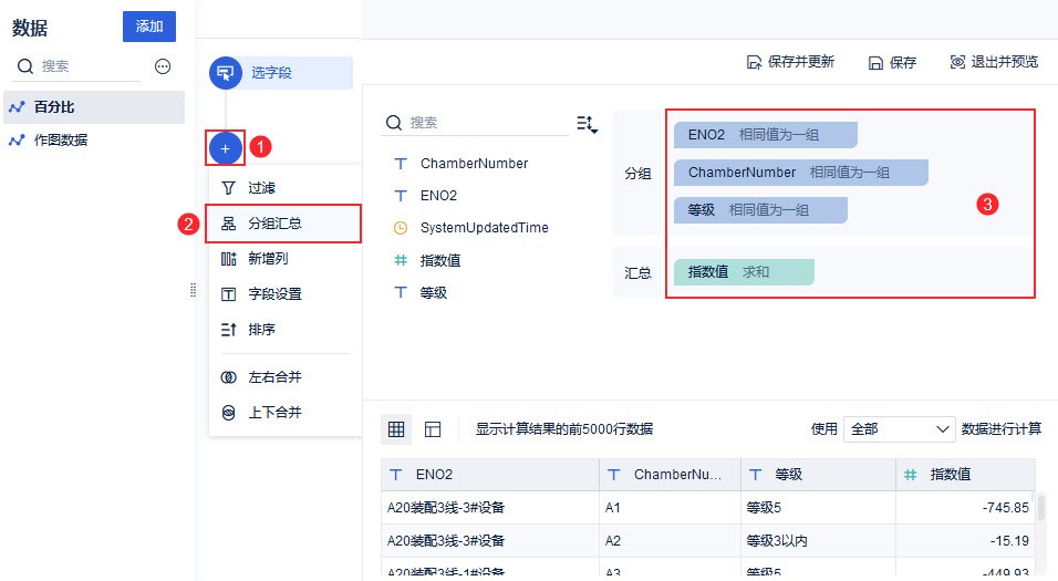 4)组内求和,求每个车间下的指数值的和。如下图所示: