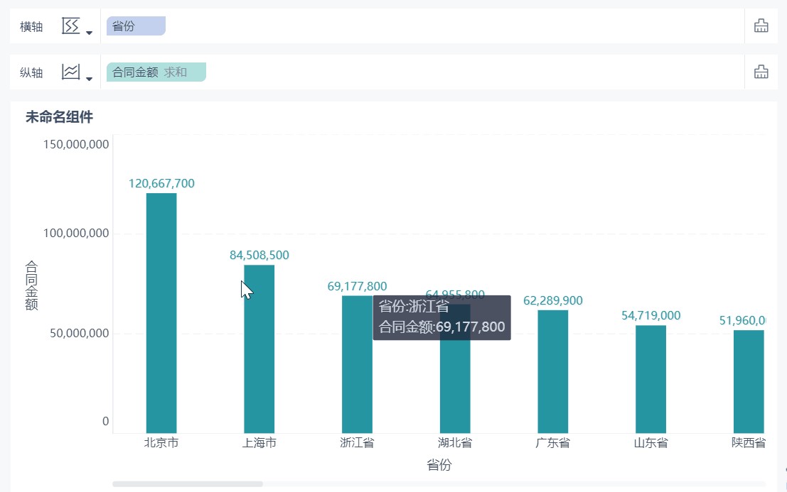 注:多系列条形图,横轴上的指标字段不建议过多,否则影响美观和数据清晰度。