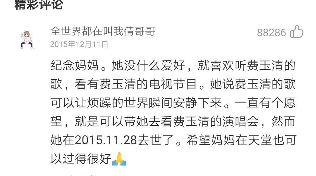 《一剪梅》网易云里最高赞的评论是一位网友怀念妈妈的。