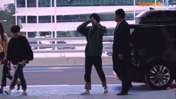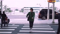 这种少年气,很多时候其实跟颜值无关,更多在于他本身的性格和整个人所呈现出来的状态——刚下车懵懵地、小跑着过斑马线: