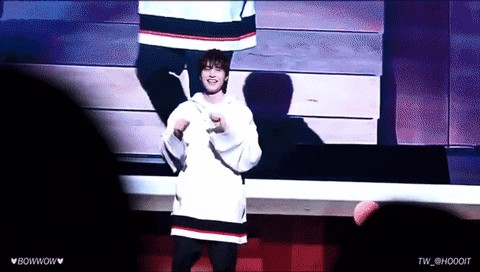 不说年龄的话,李栋旭看起来就是可爱满分、略带腼腆的大男孩——粉丝见面会,被迫营业跳女团TT舞时,几番不好意思地低头: