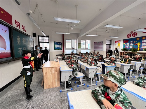 “这是龙游籍立功军人荣誉墙,这些军事模型是由学生亲手绘制作……”走进端礼小学,从军魂广场到红军连廊、国防科技长廊、莳礼军校体验馆,再到莳礼军校理论馆,一路走来,军容严整的“少年军校”学员代表为与会代表一一详细讲解。