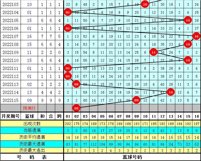 和值跨度分析:上期和值开出107,对比第2022114期和值上升了12个点位,本期预计和值在大号区域热出,看好出现在103附近。
