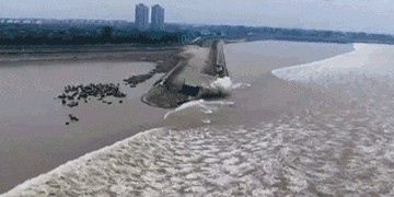 钱塘江观潮:“回头潮”掀巨浪高潮十万游客围观!