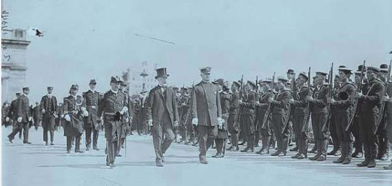 6月24日上午,“海圻”号的统领程璧光与专使载振,陪同英王乔治五世、玛丽王后以及海军大臣丘吉尔,专门检阅了“海圻”号--所有中国水军官兵昂首挺胸列阵甲板,让英王印象深刻。