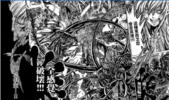 大招是魔天舞宝轮:全感觉破坏,是邪恶BOSS中我觉得唯一一个不是看起来牛逼,但实际并没有什么用的招数,这招很可怕,但是仍然不敌阿释密哒,这场战斗外挂小,双方实力也接近,最后被阿释一招夺了八感,永世无法转生