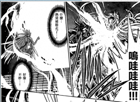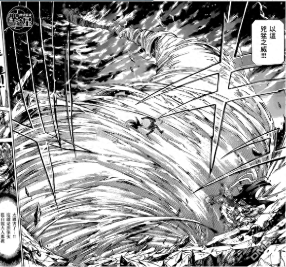 破坏力表现还是挺强的,山脉瞬间没了,在圣斗士中,能有这样的表现力已经不错了(圣斗士大部分表现力跟不上设定)