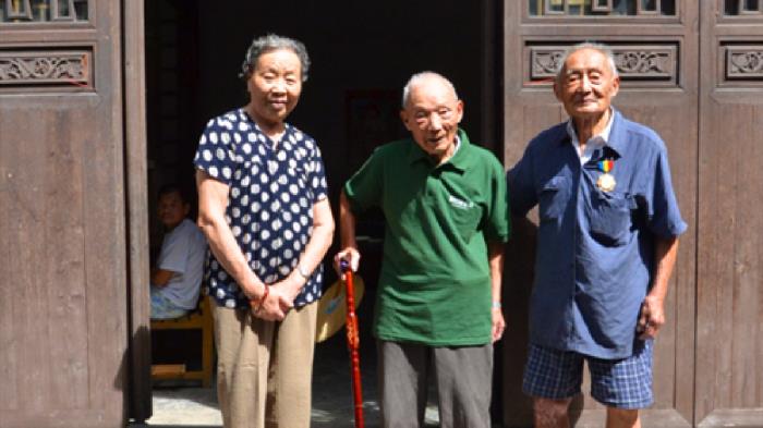 而如今,他们都过着平静安宁的生活,他们的过去已经被尘封了64年。在大门口,他们三个笑着留下了一张合影。