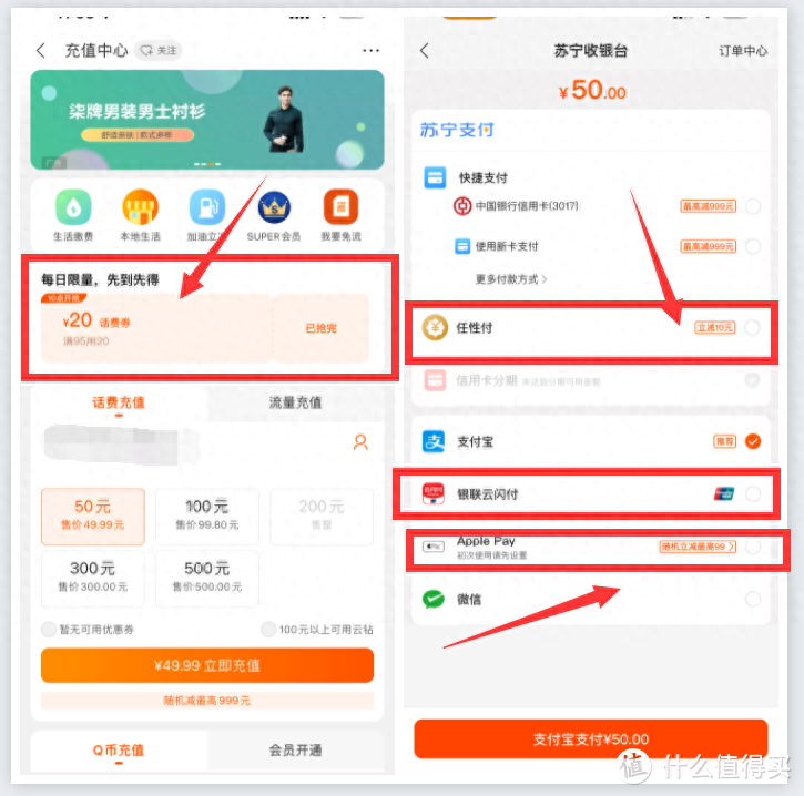 苏宁易购话费充值8折, 云闪付&ApplePay , 最高95-20元
