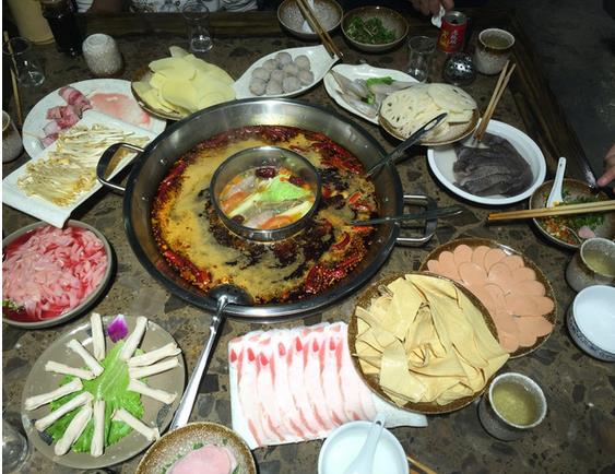 套餐菜量很足,选了鸳鸯锅,中间是清汤外,全是,辣,看上去很辣很辣,菜很多,荤菜为主,蔬菜比较少,不敢吃辣,只吃了清汤,点了一点点,辣汤就很辣了,四个人吃不完了,还有自助的银耳汤,自助的八宝粥,饭也不限量,后来又点了一些,蔬菜,南方人比较喜欢吃蔬菜,还有,川剧变脸。还有川剧变脸表演,比较精彩,小朋友非常喜欢,看热闹,当地人也很多,在这吃,还有散装的白酒,按量卖,还会再来吃。