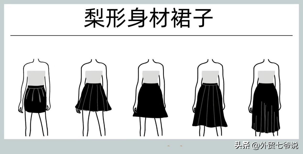 将眼睛向上吸引到上身,塑造紧身腰线并争取盖住腹部。 A 字裙或郁金香裙更友好,避免紧身、紧贴臀部的裙子;