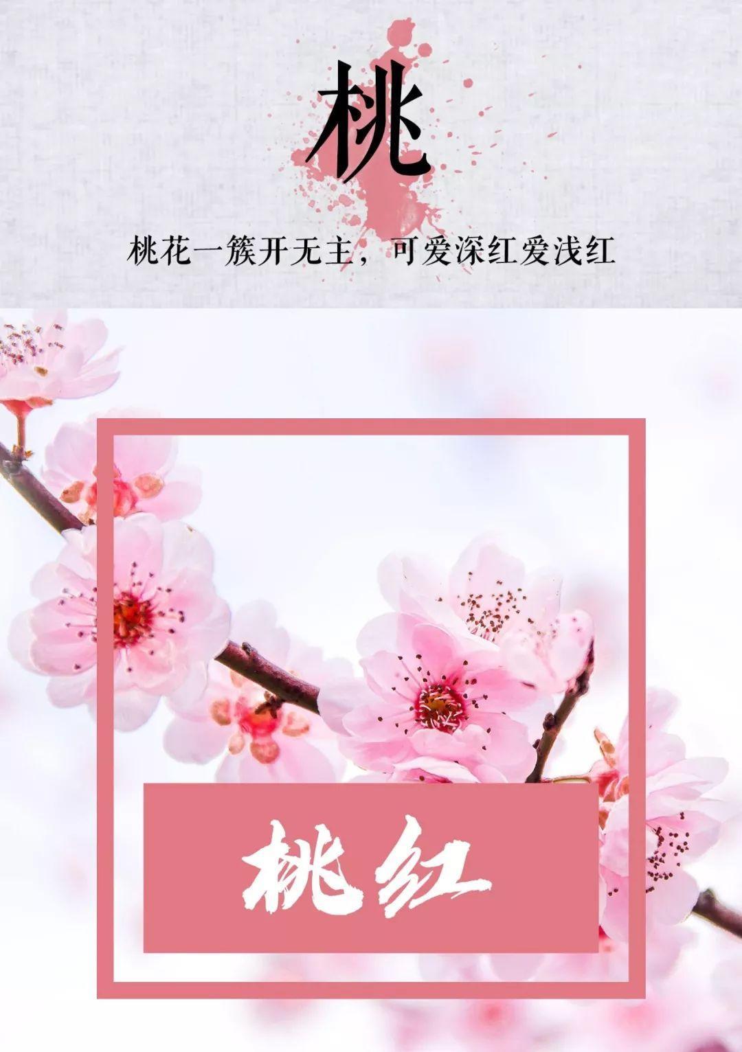 桃红,顾名思义,桃花的颜色,比粉红略鲜润。