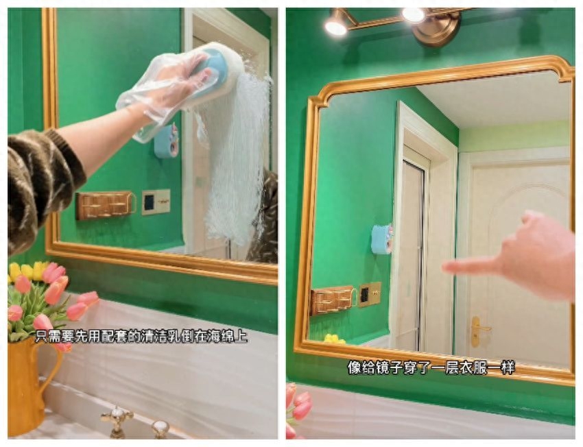 用时很简单,用海绵先将镜面擦干净,然后喷上涂层,静置8小时,让表面形成保护层。