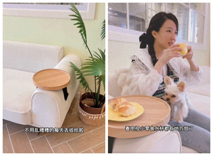 看电视总要抱着吃零食,太不方便。特意买来一个小托盘,自带支架,调节好宽度,直接卡在沙发把手上,这样零食和水杯能平稳地放在上面,吃东西超顺手!