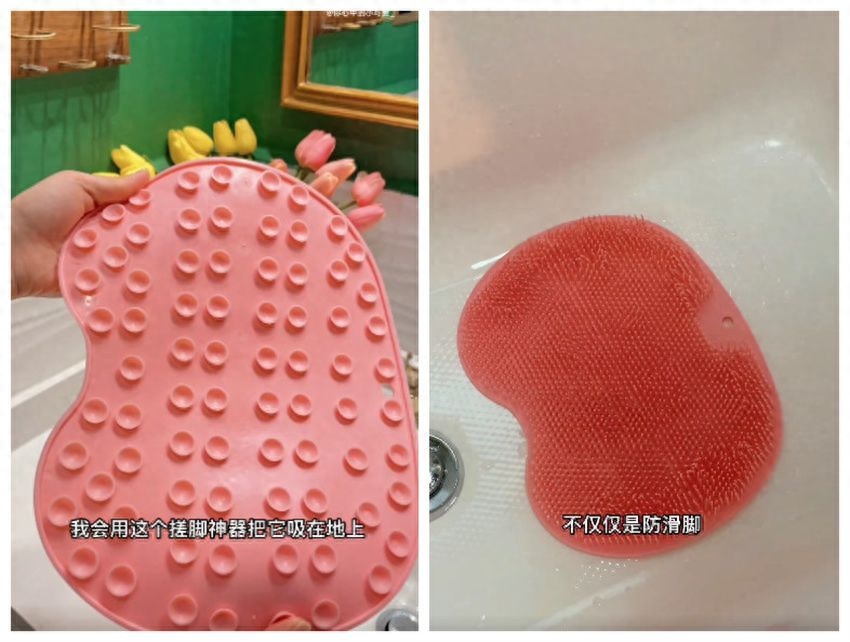 背部硅胶材质,能吸附在地面,洗澡站在上面,既防滑又能当搓脚巾用,超方便,每天洗脚幸福感高!