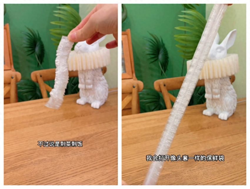 外观超像毛毛虫,实际上它是保鲜袋。一拉就开,容量够大,一般我把它盖在盘子上,保存食材,干净卫生。不用再费劲撕扯保鲜膜,很省心!