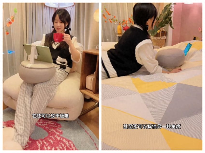 自带手机支架,无论是坐着还是趴着,都很好用,从此追剧不用再架着胳膊,超级舒服。