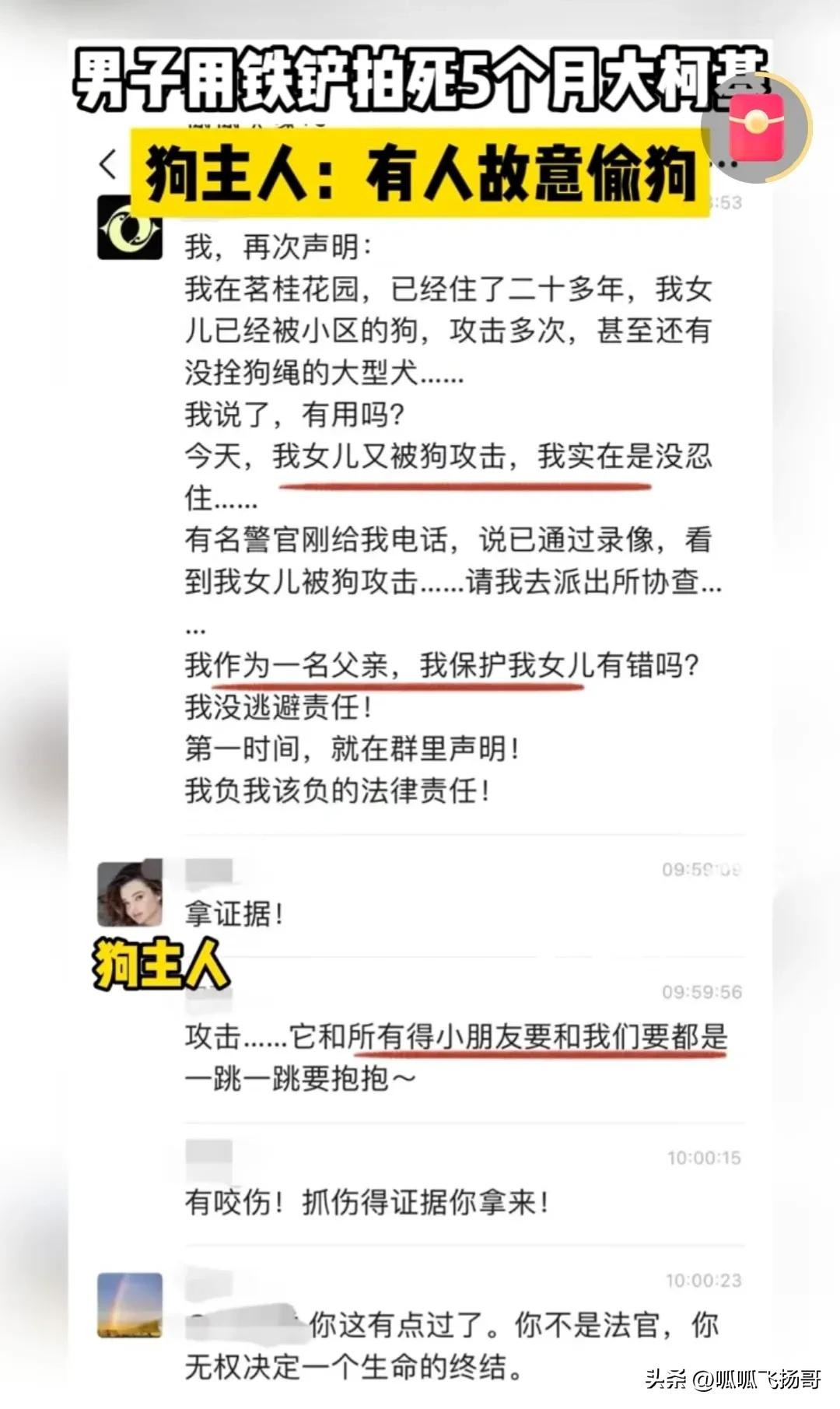 男子也在群里进行了反击,他说自己的孩子被这条小狗吓到了很多次我保护我自己的女儿有什么错?