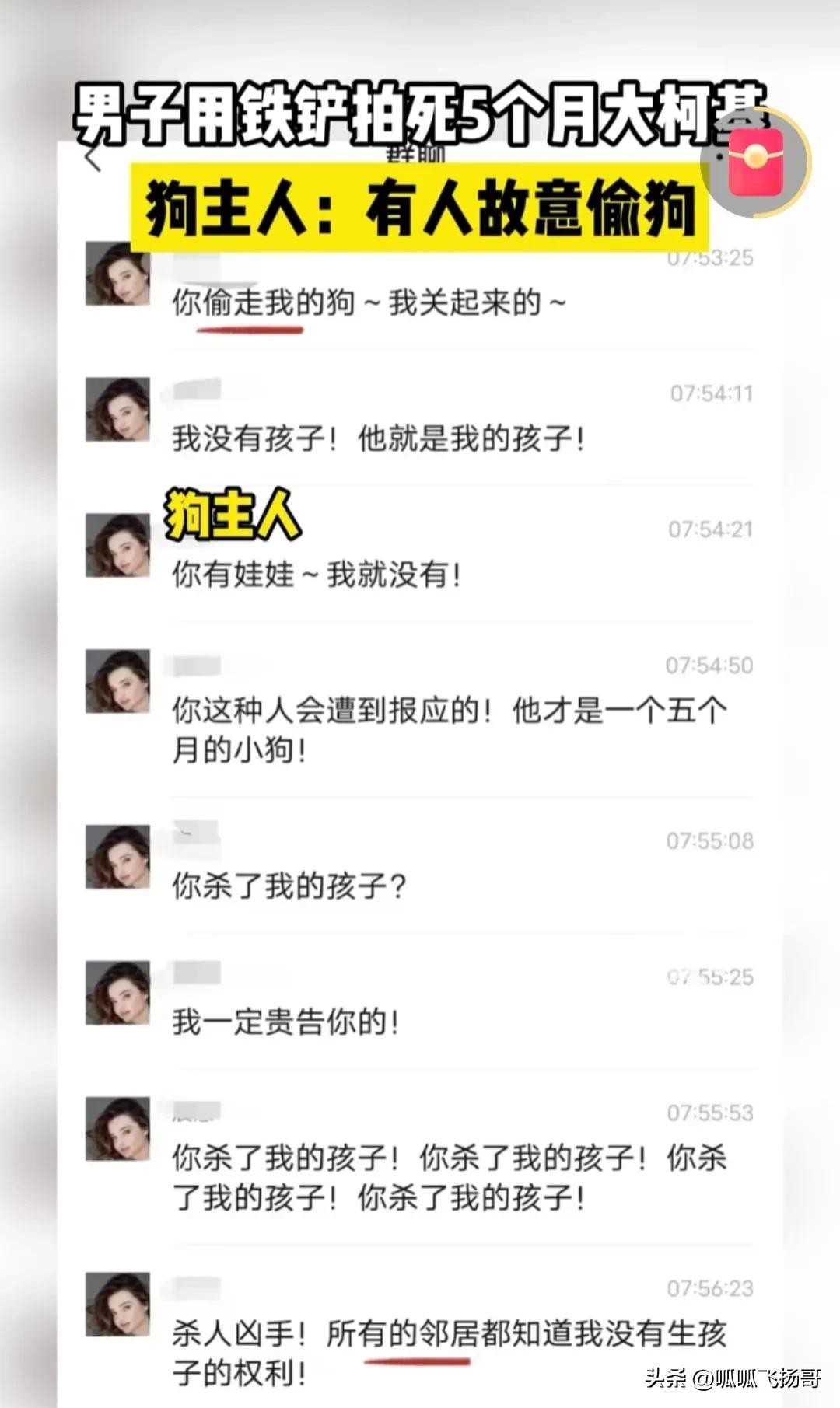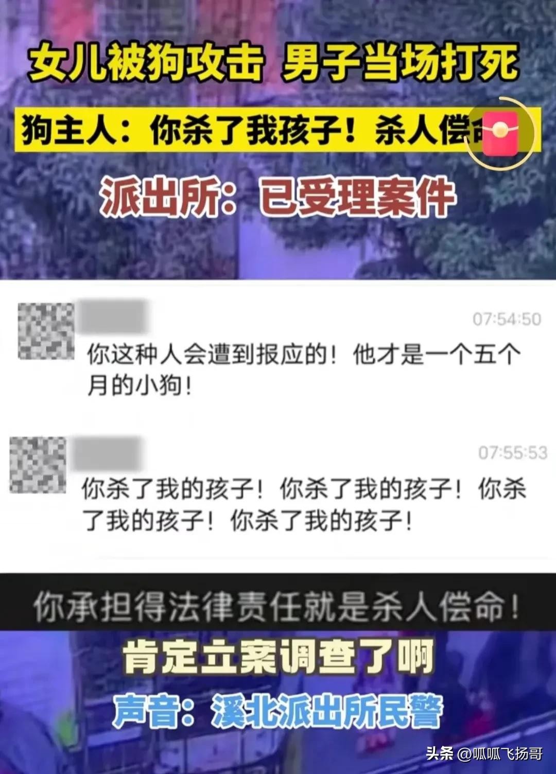 狗主人在业主群里声讨和威胁打狗男子