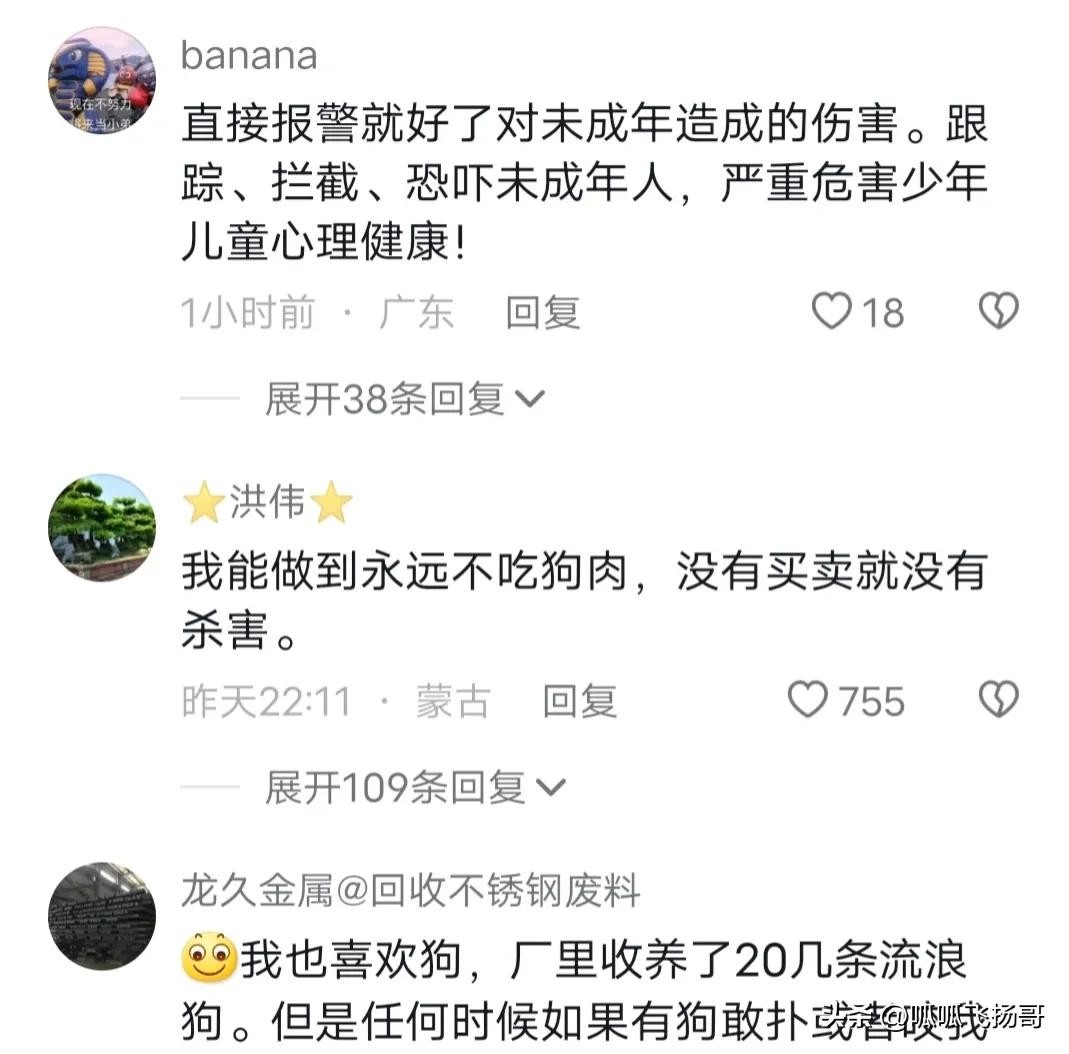这只是部分截图,9成以上网友对这个自称的爱狗人士的行为表示强烈愤慨!都一致认为这个爱狗人士已经涉嫌恐吓,骚扰,威胁他人,严重违法,应该严惩!