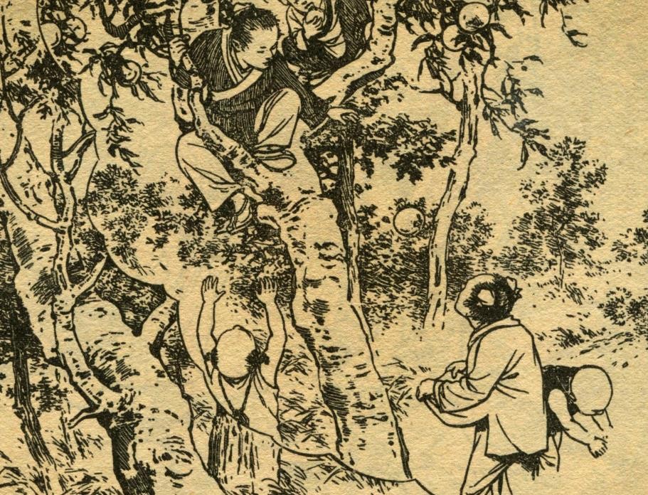 其实,老桃树不是在打瞌睡,它正在回想它年青的时候。每逢小孩们来摘桃子的时候,桃树总是和和气气地对小孩说:“你吃吧,你想吃就吃吧······”