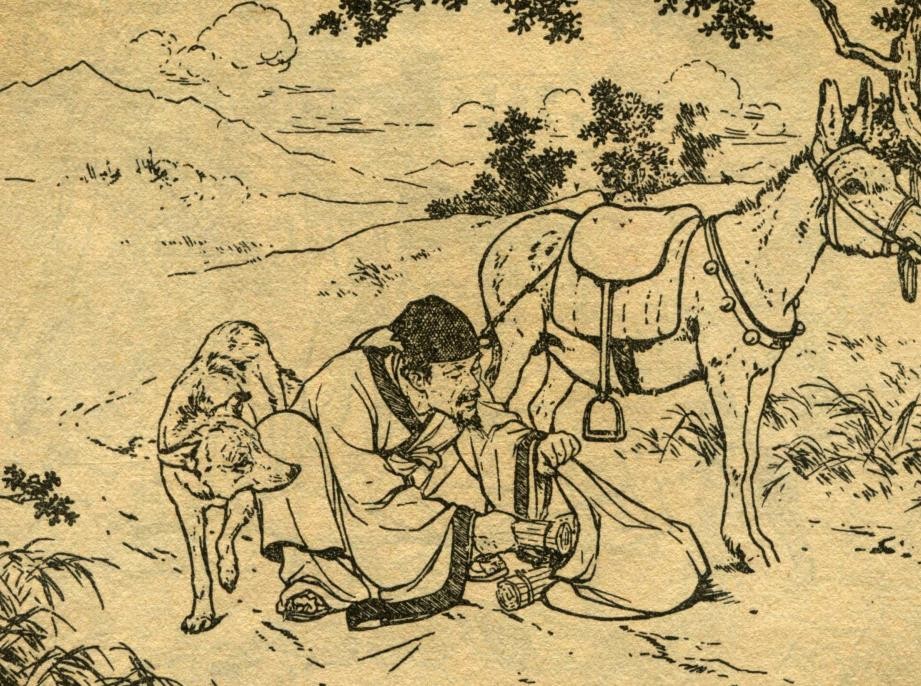 快要到中山国的时候,东郭先生看见一个妇人坐在路边啼哭,他赶快走上前去问讯。东郭先生劝了她几句,就继续走他的路。