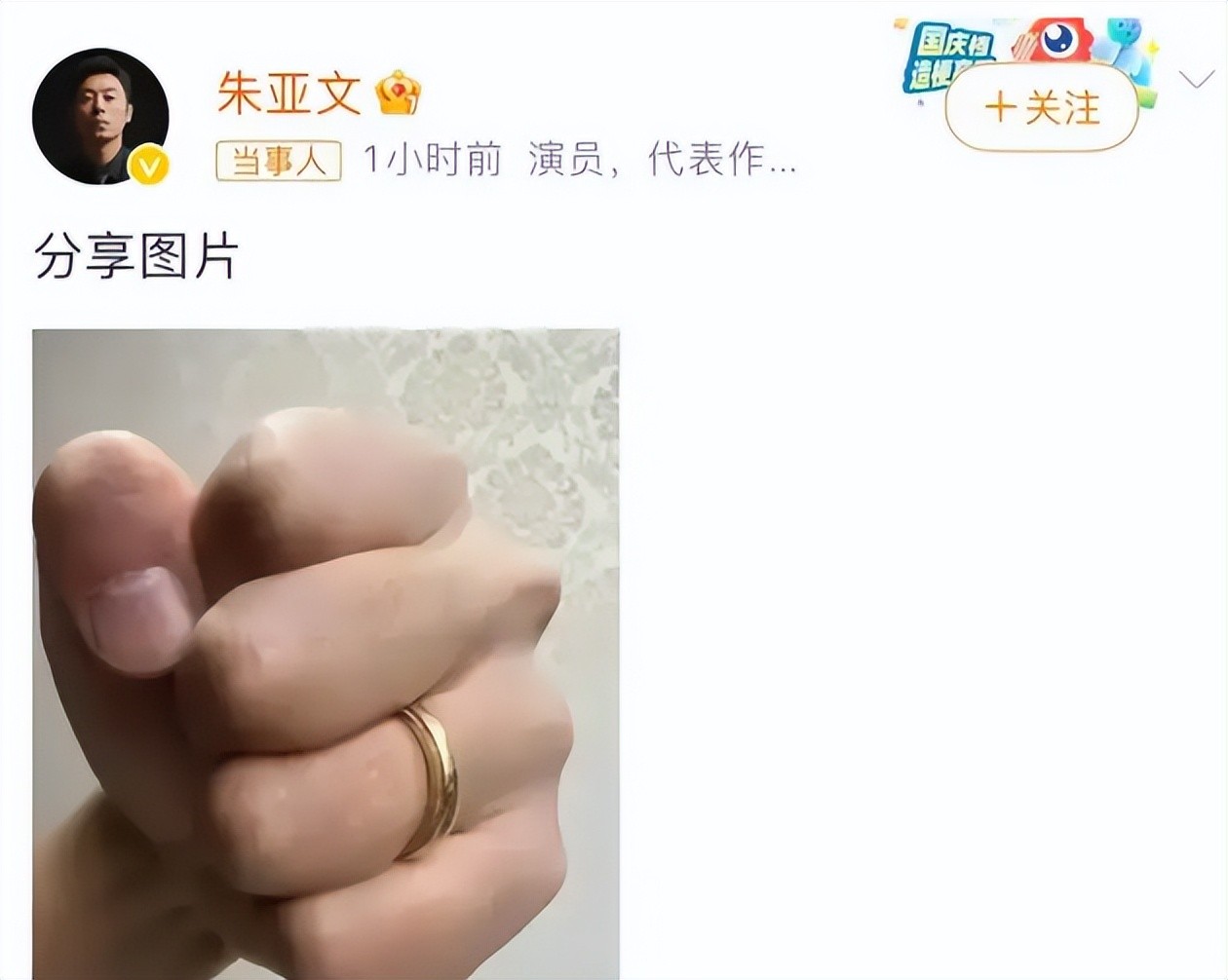 就在大家议论,这两人怎么突然离婚时,朱亚文直接晒出一张照片,手握拳并且戴着戒指,虽然在发这张照片没有附带一个文字,但也已经说明了一切。