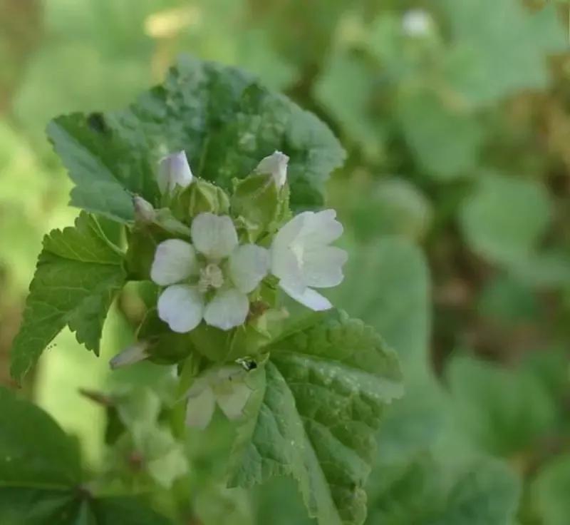 叶子圆润,常有多个裂片或裂角,叶尾如心;裂片如三角,但显圆润;叶缘有细细的锯齿;叶子大都皱缩扭曲,两面光堂,叶柄柔弱,疏被柔毛。