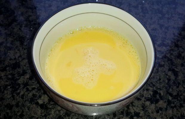 第一步:我用的是2个鸡蛋,将鸡蛋打入碗里打散,一定要打得很散哦。