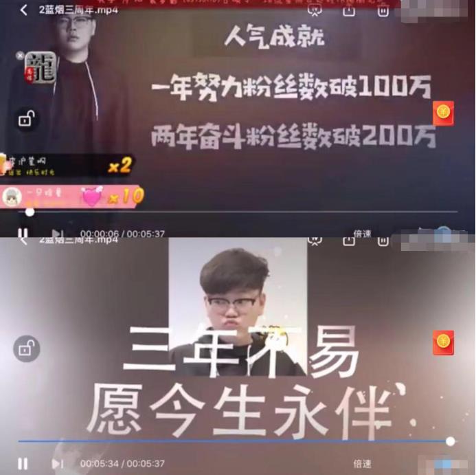 除了在直播间跟粉丝一起吃蛋糕庆祝三周年纪念日之外,蓝烟的粉丝更是十分走心的录制了三周年祝福视频,而蓝烟在播放这段三年直播回顾视频和粉丝的祝福视频也是被感动得红了眼眶,直播间的氛围瞬间温情满满,十分感人。