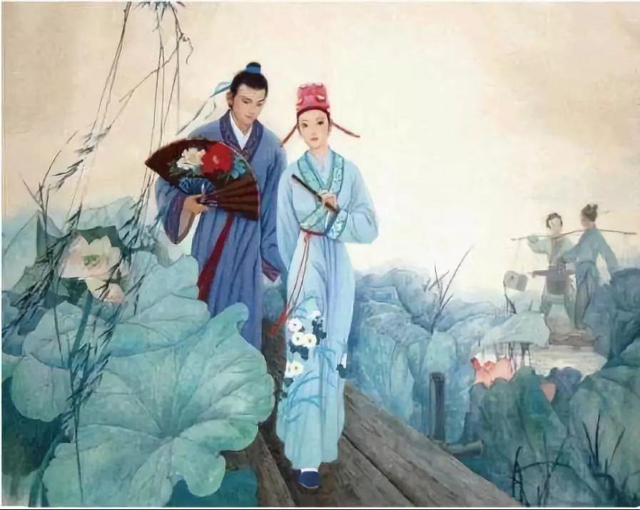 中国古代东晋时,浙江上虞祝家有一女祝英台,其女扮男装到杭州游学,途中遇到会稽来的同学梁山伯,两人便相偕同行。