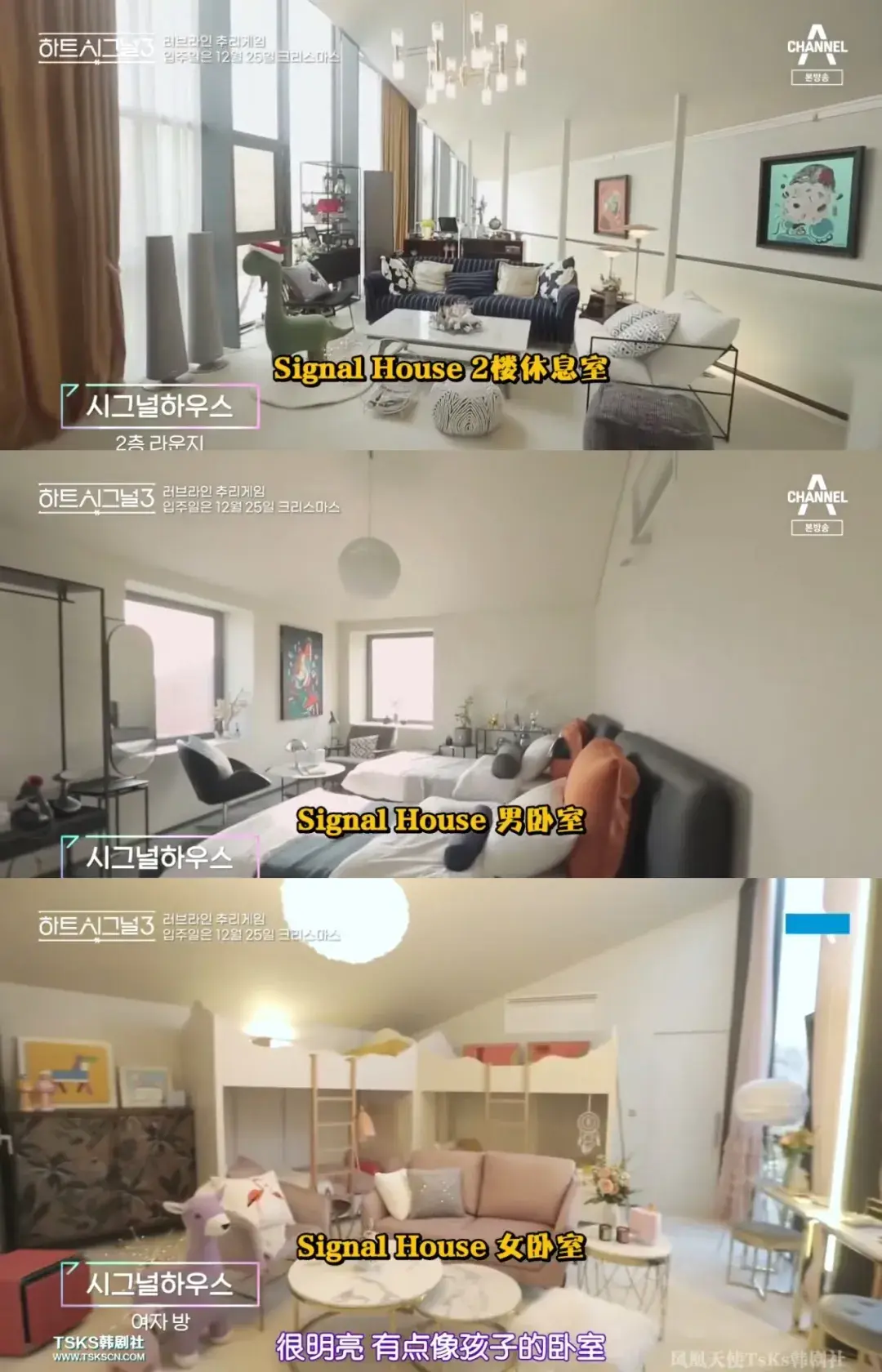 Signal house升级:房子每一季都在升级,环境和装修风格是毋庸置疑的温馨,但这一季的房子有两个值得注意的点,一是男女嘉宾的卧室就在同一层面对面,这样的设计为男女嘉宾日后在门口的相遇等暧昧情节埋下了伏笔;二是在一楼二楼之间额外设计了一段独特的楼梯,可不经过一楼客厅厨房直接在门外上楼,为日后的情节增加了小意外几率,为一些互相错过的情节做铺垫。