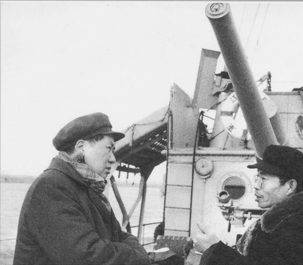 毛主席在军舰上视察黄河
