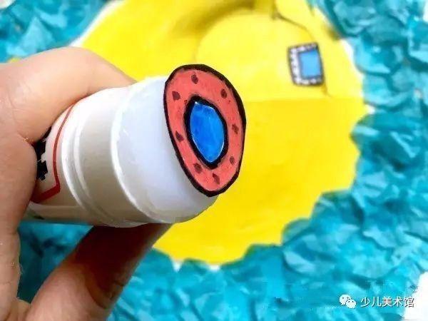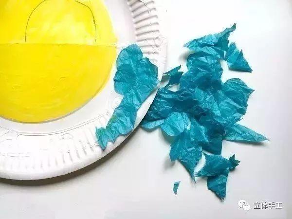 4.用固体胶将它们粘贴在纸盘圆形的黄色区域。