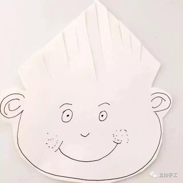 【制作步骤】在纸盘上画出人脸的轮廓,然后用剪刀剪出头发的形状。