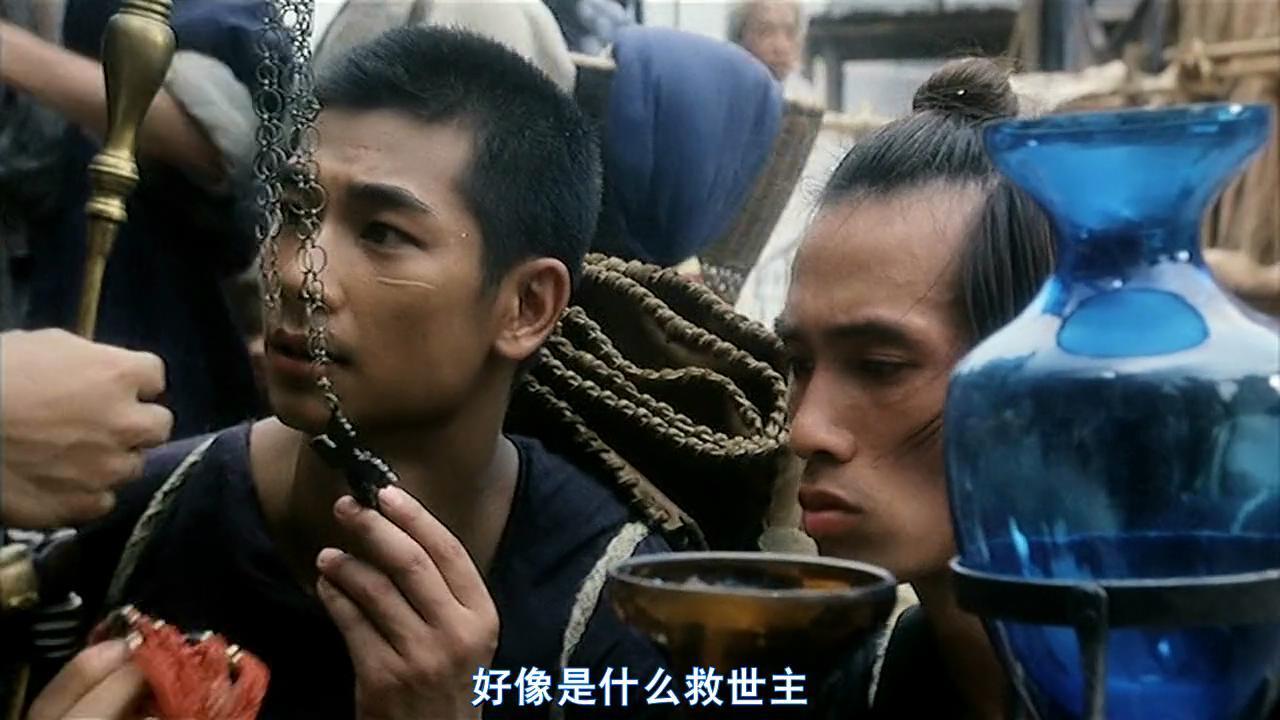 左是定安右是铁头,二人送刀途中定安给师傅买护身符。