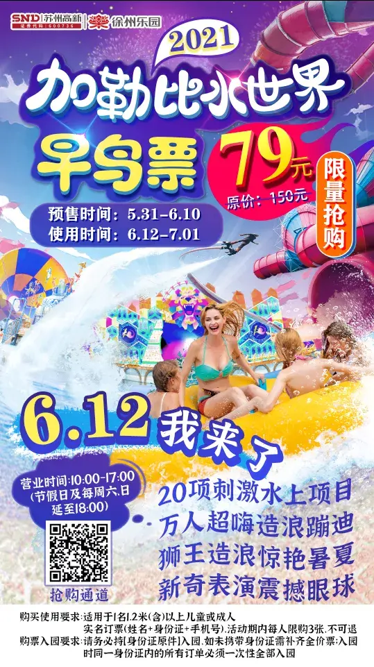 端午节来徐州乐园玩!99元欢乐世界79元加勒比水世界等你