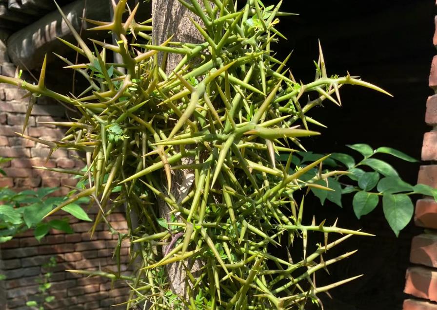 要说大自然界的植物是真的非常神奇,有的植物为了保护自己防止被动物啃食。不断的进化,让身上长满了密密麻麻的尖刺,非常的恐怖吓人。例如农村常见的棘茎楤木(鸟不落),还有竹叶花椒(山花椒、野花椒)等等,在野外笔者看到都是避而远之。而除了这两种植物之外,其实还有一种植物比前两种有过之而不及,它的尖刺更加长,也更加的锋利,看一眼就能让你毛骨悚然,这种植物就是皂荚树了。