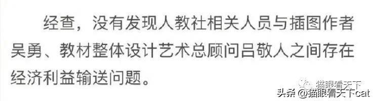 对于网友们最为关注的问题也就是人教社与吴勇、吕敬人之间有没有经济利益输送问题,则是很简单地说没有发现。这个“没有发现”是什么意思?字面上看,可以理解为可能有,但没有证据证明,或者是不知道有没有,反正调查下来没有能证实。或许就是,可能有,也可能没有。